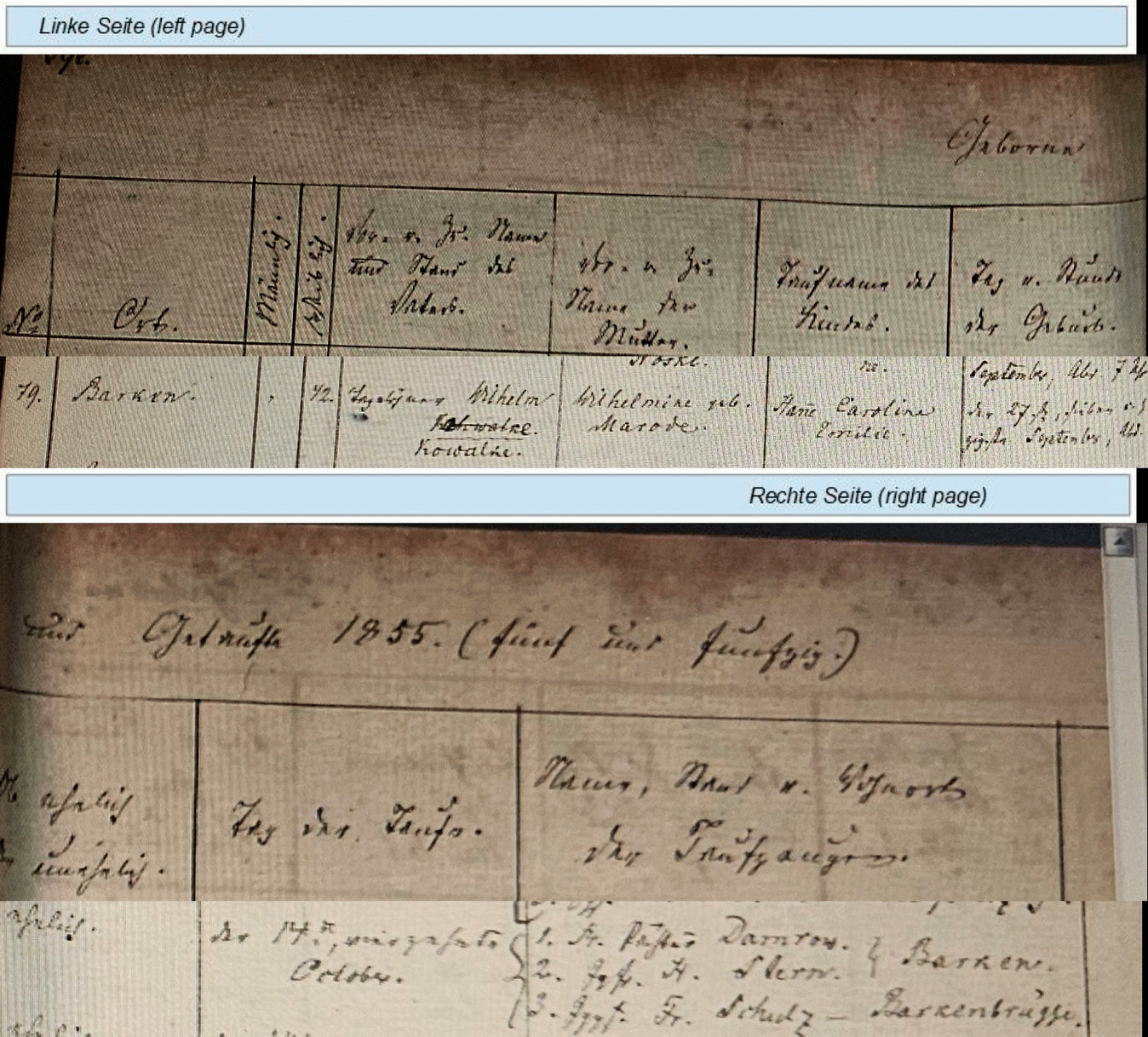 * 27 September 1855 in Barken, Kr. Neustettin, Pommern (Ev Lottin)