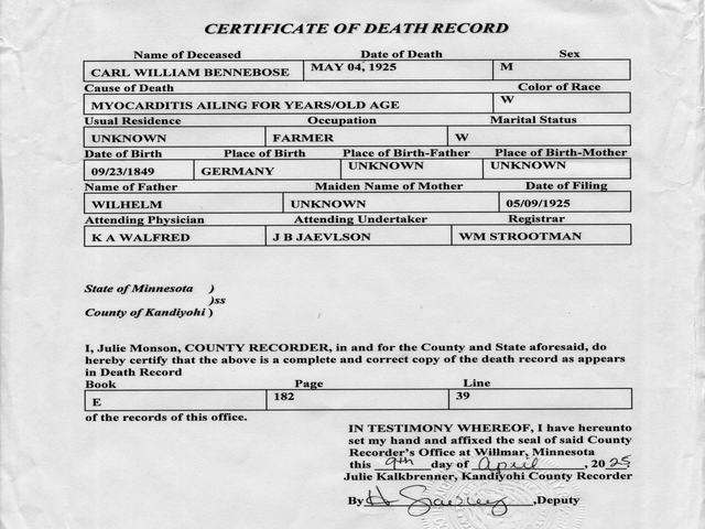 † 05 April 1925 in Willmar, Kandiyohi County, MN |