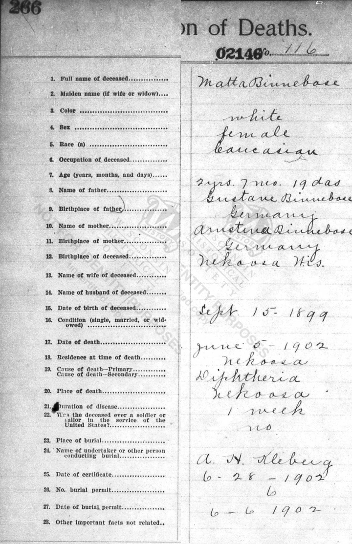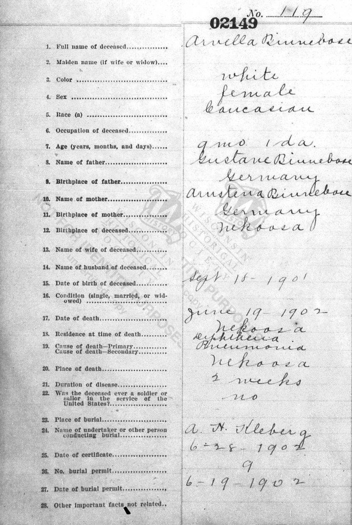 † 19 Jun 1902 in Nekoosa, Wood county, WI |