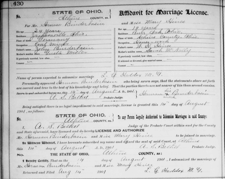 oo 14. August 1901 in Athens County, Ohio, USA |
