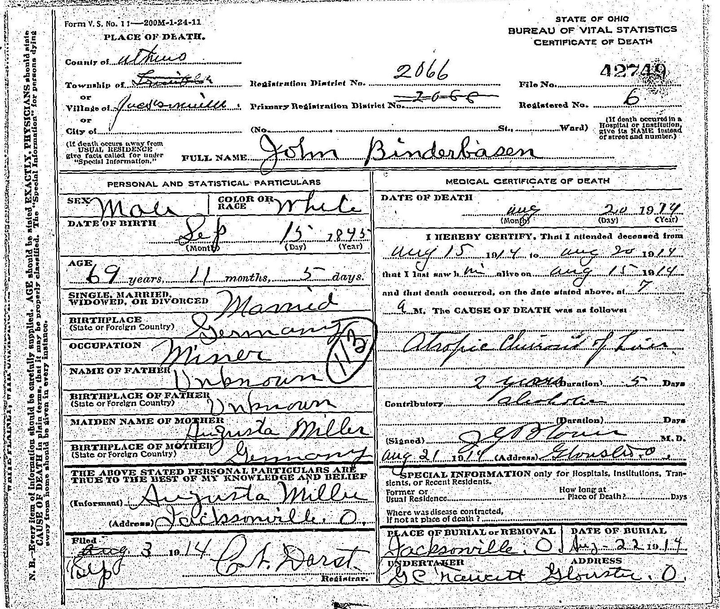 † 20 August 1914 in Jacksonville, Ohio, USA |