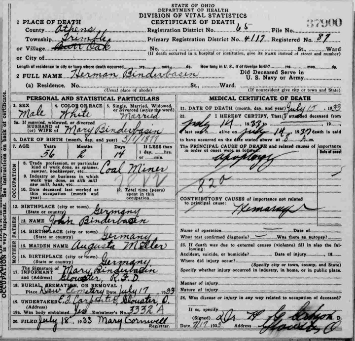 * 28. Oktober 1884 in Athens County, Ohuio, USA |