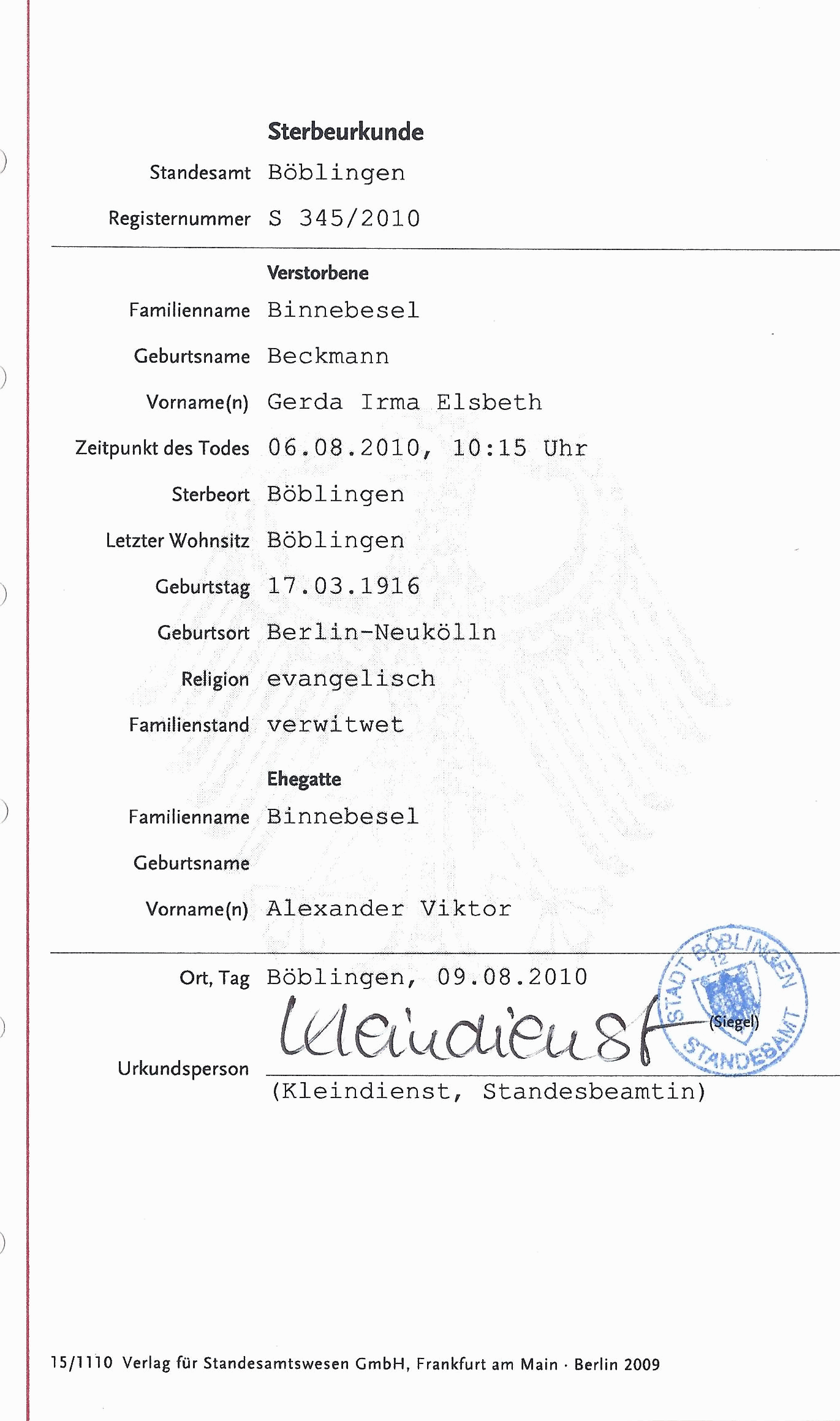 † 06 Aug 2010 in Böblingen (StA Böblingen) |