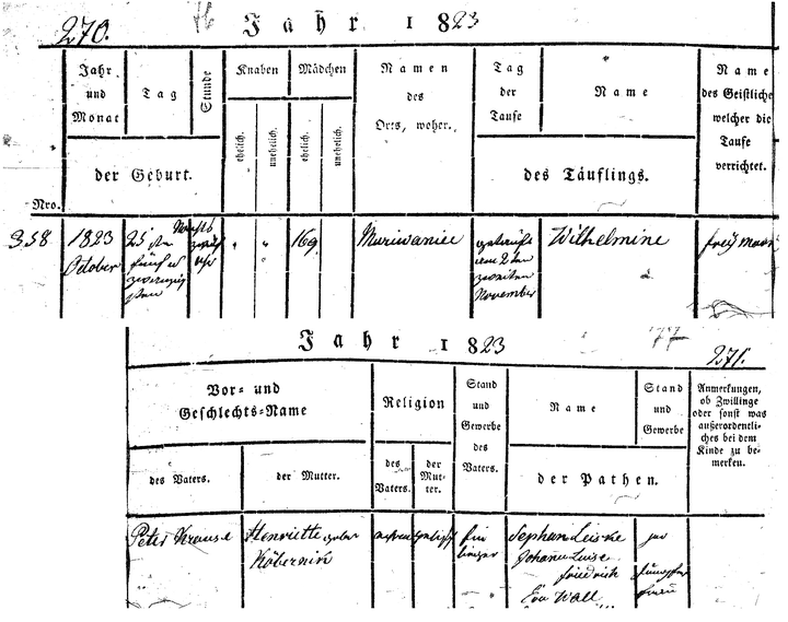 | * 25 Oktober 1823 in Muriwaniec, Posen (EvKi Bromberg) |